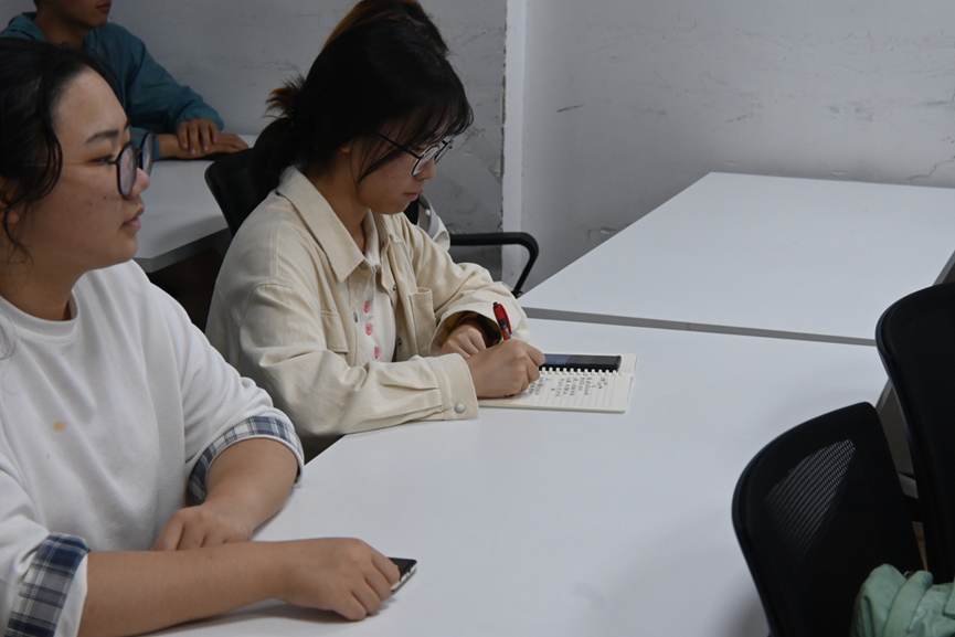 会议过程中,李娜同学首先谈到会议稿和活动稿的区别,强调会议稿一定要严谨,而活动稿偏生动,写作时不要过于死板。接着,提到在需要了解更多情况时,可以去进行有侧重的采访。然后,按照格式、开头、正文、结尾的顺序详细的介绍了一篇新闻稿的制作。最后,李娜通过几幅图片,向大家补充了关于新闻摄影和构图的相关知识。同学们认真聆听学习,通过记笔记、拍摄PPT等方式捕捉写作及拍摄的要点技巧。