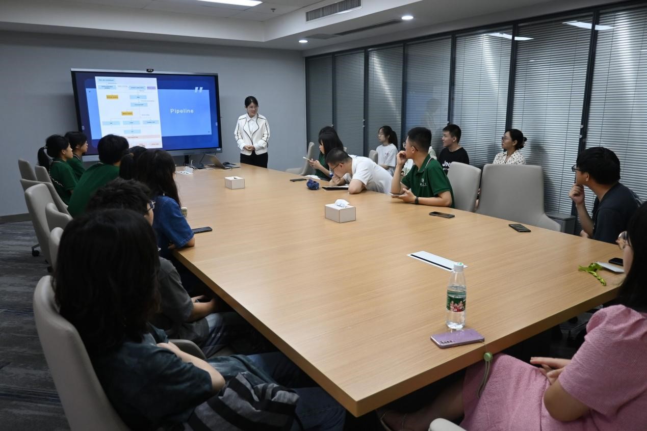 随后,同学们一行来到公司五楼会议室参与生物信息学专业相关讲座。从“BAM”、“SNV”、“VCF”等生信术语的解释到Python、Java、R等计算机语言的应用,在主讲人孙老师的讲解下,同学们对康圣环球有限公司主流测序技术的总体流程有了进一步了解。“从事生信分析工作需要同时掌握多门计算机编程语言还是只需要精通其中一门呢?”支部成员向孙老师提问道。“从事系统开发工作是需要多门语言相互结合使用的,像C、C++、Python之类都是需要掌握的。”在现场的激烈讨论与问答中,同学们对生物信息学专业从事相关工作的综合能力需求有了更深层次的认识。此外,同学们了解到数字基因、纳米测序等新兴测序技术的概念与原理及其相对于一代测序技术、高通量测序技术的优点与不足。