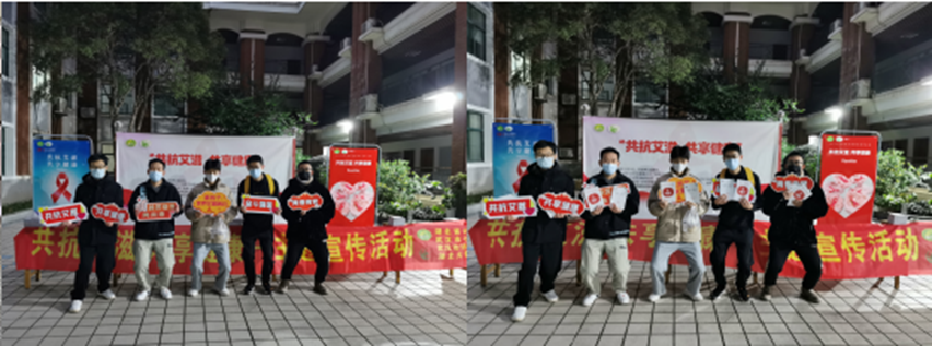 线下活动以校园摆点的方式进行,同学们高举手牌,合影留念。共计发放《珍爱生命 远离艾滋:周博士漫“话“艾滋病预防》宣传册500份、红丝带口罩1000份、消毒湿巾100份、防艾帆布袋100份、安全套200份。