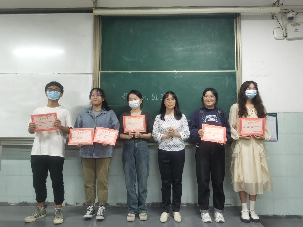 图为蔡文涛老师和获奖同学合影