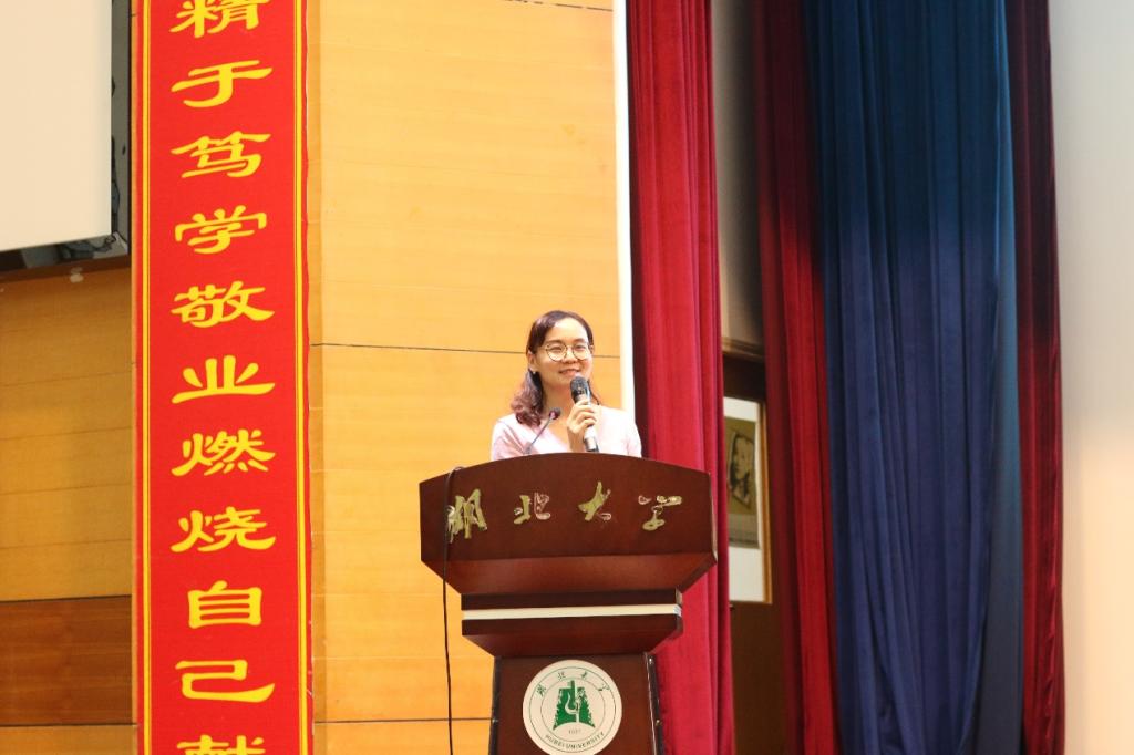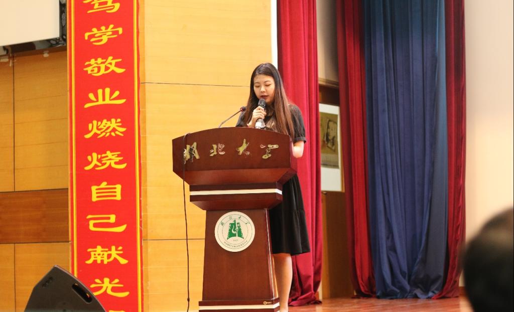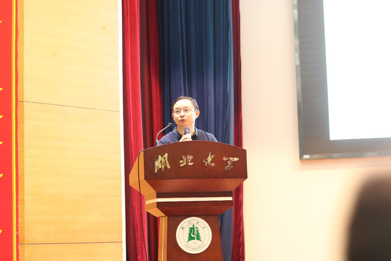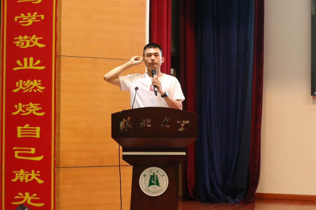 此外,2020级硕士研究生胡全义作为员工代表发言,以亲身经历和感触向同学们分享自己学习和生活中的经验。他说,读研究生的过程注定不会一帆风顺,看不懂的英文文献、无数次的实验失败、读不完的学术论文,才是科研生活的常态。而应对这些困难的办法就是保持良好的心态。“去销品茂喝杯茶颜悦色,去漫时区看看电影,去沙湖边感受迎面而来的微风。”在轻松的氛围中号召新同学们积极调整心态,以更好地状态迎接未来的挑战。