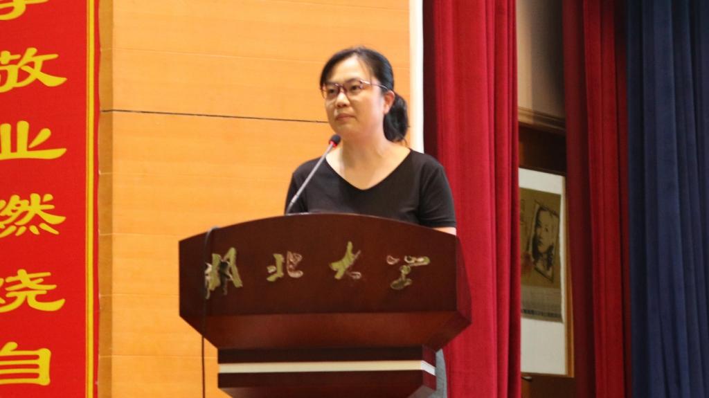 研究生工作站合作企业武汉新华扬生物股份有限公司的总裁助理陈祺女士作为企业代表发言。她从研发体系、管理体系、营销体系、文化价值观、战略愿景等方面介绍了公司基本状况,并欢迎同学们加入新华扬,为自己、为社会创造更美好的未来。