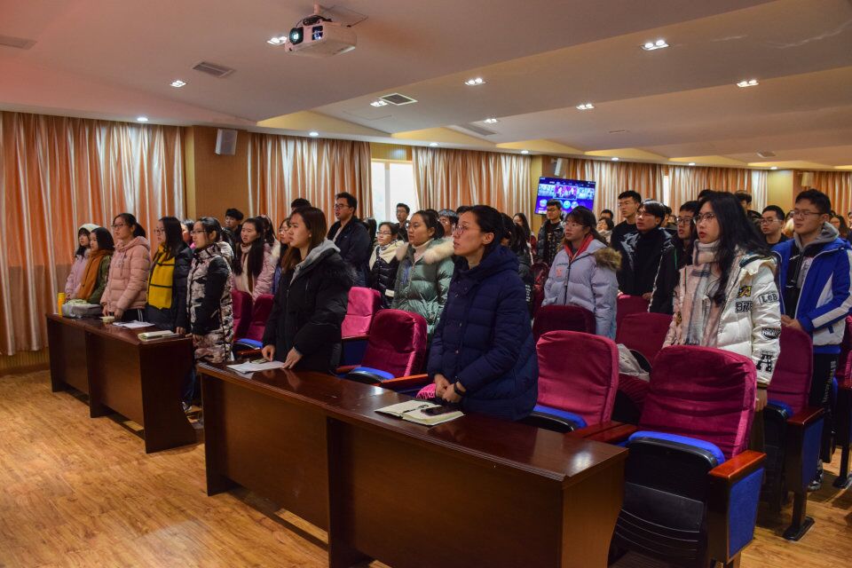交流会伊始,主持人张雪彬希望团干们带着“你们是否了解我们所处的这个时代”、“为什么她会被称之为新时代”、“新时代又对广大青年提出了什么要求”这三个问题进行学习,随后主持人组织团干们重温入团誓词、团歌《光荣啊,我的共青团》,播放《建党伟业之五四运动》以及共青团十八大相关视频,让大家缅怀团历史的同时,也学习到共青团在过去五年里的“八新”作为以及对新青年的新要求,有了初步的认识。随后主持人介绍了中国海军陆战队的宋玺、2017年《中国诗词大会》总冠军武亦姝、亚洲游泳王者徐嘉余、青年村官秦玥飞四位当代的优秀青年,总结出爱国、才华、坚韧、担当是当代青年应该有的标签。