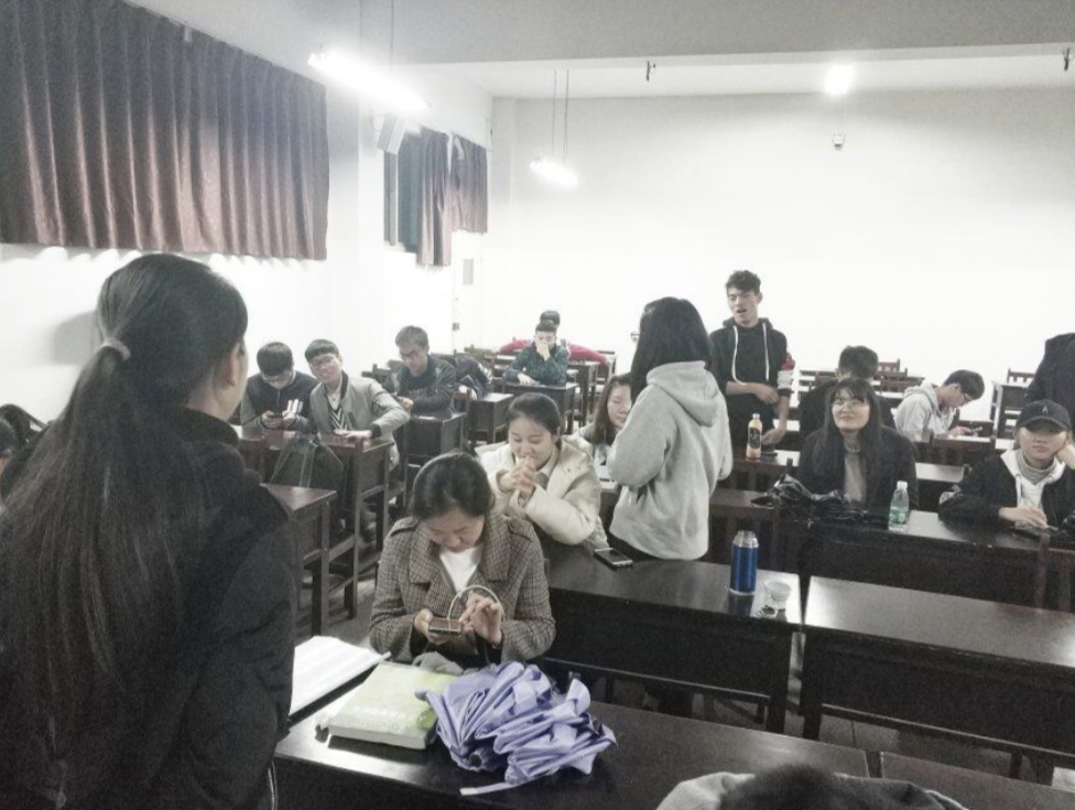 在班委点名确保人员到齐后,活动正式开始。张小康同学首先发言,提到之前与母亲唠家常时,母亲常给他讲她们小时候的生活和这么多年来的变化。在他母亲的记忆里,上小学时会用有价值的东西来抵学费,上课时要坐大长板凳,还用案板当桌子,有时候还要去放牛,打猪草喂猪……在穿衣方面基本上是“新三年旧三年,缝缝补补又三年,大的穿了给小的穿。”“而今天,我们解决了温饱问题,衣服鞋子可以到商场里去买,贫困人数也在下降,大部分人也都过上了小康生活。”张小康同志如是说。