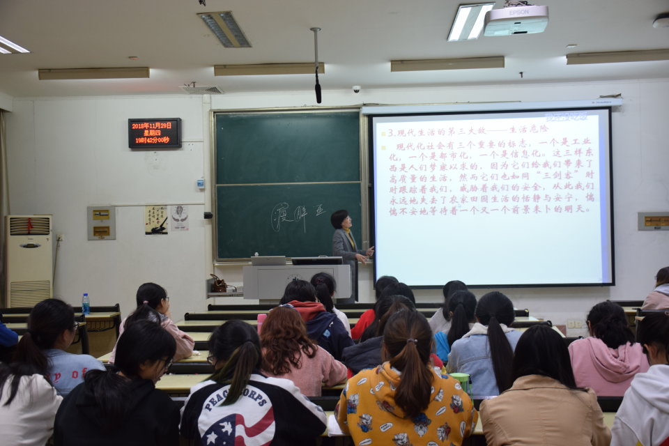1129号,由健康俱乐部举办的健康大讲堂在教四顺利开展。此次讲堂面向全校同学,并且特别邀请了体育公司教授代方梅来为同学们讲上了关于健康的重要一课。