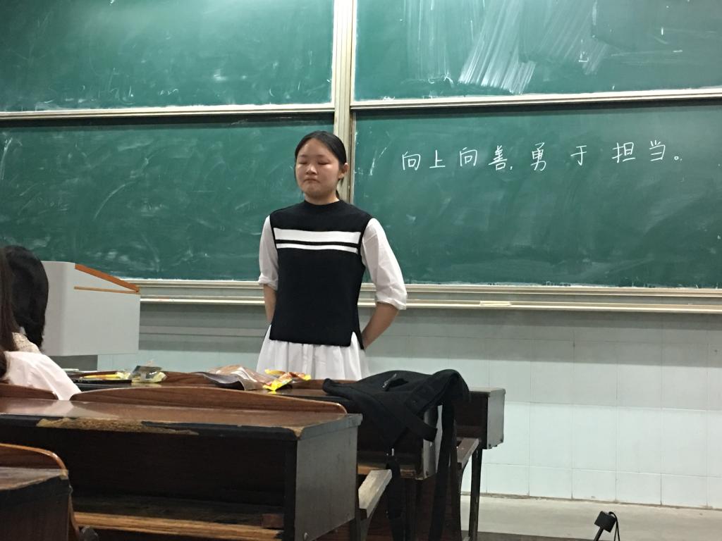 在小组代表发言时,汪家恒跟大家着重谈论了担当精神。他说,习近平总书记曾指出:“担当就是责任,好干部必须有责任重于泰山的意识,对工作任劳任怨、尽心竭力、善始善终。”不仅是党员干部,员工干部、入党积极分子、甚至是普通群众,都要有担当精神。他表示,担当精神表现在对待工作认真负责,勇于承担责任等方面,并呼吁大家在班级里要有主人翁意识。“因为建设好班级,需要全班的共同努力。”他说。