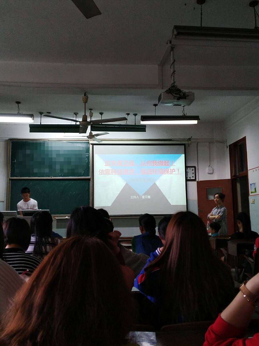 41日下午五点半,17级药学班于3号教学楼306教室开展了第一次由本班人员自己组织的以环境保护为主题的班会。
