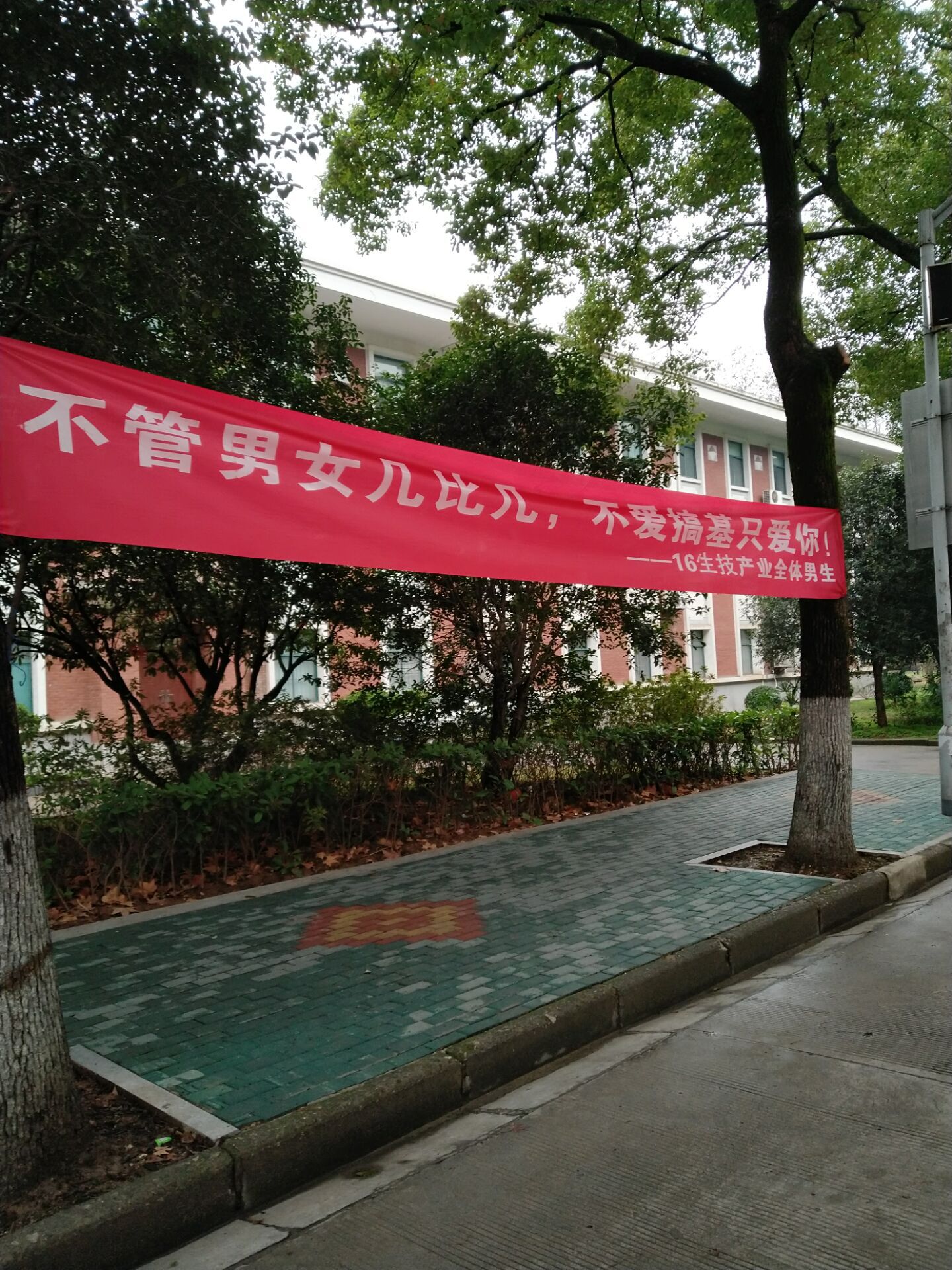 据了解,早在女生节到来前一周的时候,16级生物技术产业班的男生们就已经自发组建了一个讨论组,专门为此次女生节商议策划,在班级团支部的引导下,确定了三环相扣的步骤。在女生节前一天夜里,男生们冒着雨在去教学楼的必经之路上挂上了一个语言幽默的横幅,正因为独特的幽默感,在女生节当天还被校外媒体注意报道。紧接着,第二弹与第三弹接连进行,抽礼物,录视频,再经过三四天的选购准备,一切都示意着一个不同的周日。(摄影:杨子南 编辑:吴雨薇)