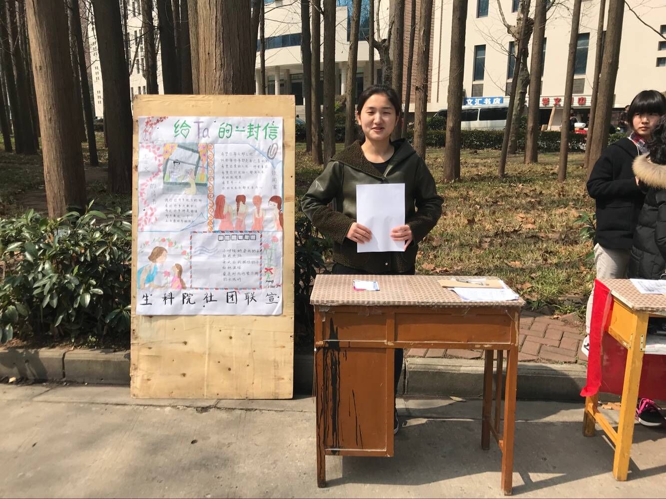 此次活动的目的在于为同学们提供一个方便的平台,说出对Ta深藏已久的话。“Ta可以是在家的父母,也可以是你心中的那个Ta”,宣传板上的话旨在号召同学们能够抽出时间静下心来写一些文字诉说心情,用纯粹的感情去体会、去表达,用一颗质朴热切的心去感悟、去倾诉。本次活动分为两个部分,一是同学们在36日至38日在嘉慧园以及老员工活动中心领信封给Ta写信;二是在311日前在嘉慧园以及老员工活动中心收集信件,由专门人员粘贴邮票,现场密封,将信件按照地点进行分类并投入信箱中。活动期间,同学们纷纷前来投信。那一封封载着深情的信件将于311日后发出,一张薄薄纸联系着亲情、爱情,有理想畅谈,亦有心事诉说。