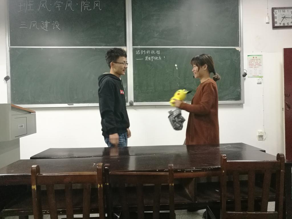 11月12日刚刚度过双11的狂热,16生物技术产业班的女生们在班会前给男生们了一个大大的惊喜,在经过一系列秘密商定后,16生物技术产业班的第一次男生节拉开帷幕。
