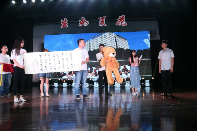 2017年6月4号晚六点半,大家期待已久的生科院毕业生晚会如约而至。晚会感恩环节上,2017届毕业班级代表给他们的班主任许良发送上了一份特殊的礼物—一只大熊。