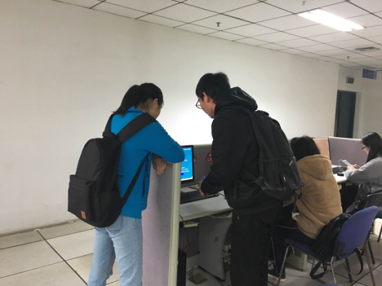 当志愿者们来到图书馆电子阅览室时,发现即使是星期天也有不少同学在努力学习;因此,志愿者们放轻活动时的音量,尽量做到不影响其他同学的学习。
