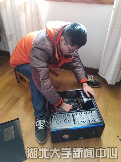 本网讯(记者团 周黎明)1月31日,大年初四,天上下起了小雪,湖北老员工物技术专业的熊兆钦却整装待发,背着电脑前往一位旧时同学家,又一次开始了他的义务上门维修电脑服务。在发布寒假义务修电脑的信息后,他先后在线上线下为几十人服务。