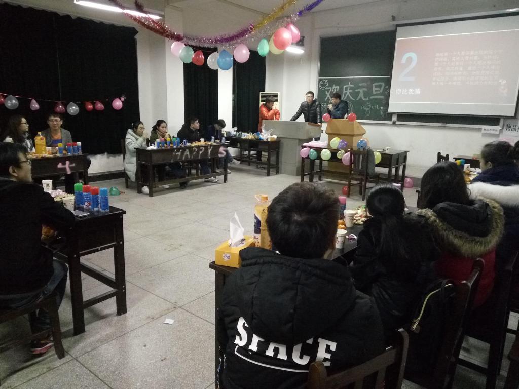 回到公司,班委精心布置元旦晚会的教室并邀请了转专业的同学,大家重聚一堂,男生女生间交换了礼物。组织部的同学们准备了游戏让大家轻松一刻玩闹后还有“严肃”的知识竞赛,全班同学轮流答题,各种奇葩的题目让同学们应接不暇。晚会的气氛热烈,大家都很好的融入到了班集体。