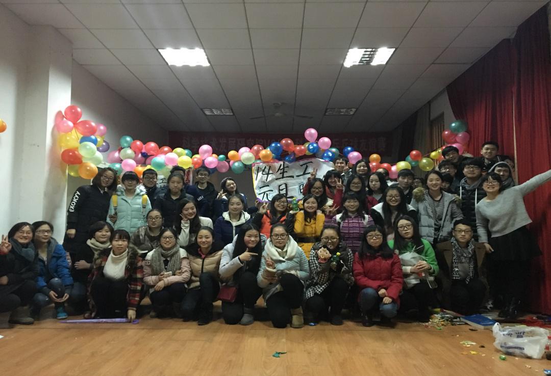 12月27日晚,在2016年新的征程即将开始的时刻,14级生物工程班全体同学聚集一堂并邀请班主任熊敏老师来到生科院一楼活动室,举办了班级第一场元旦联欢晚会。