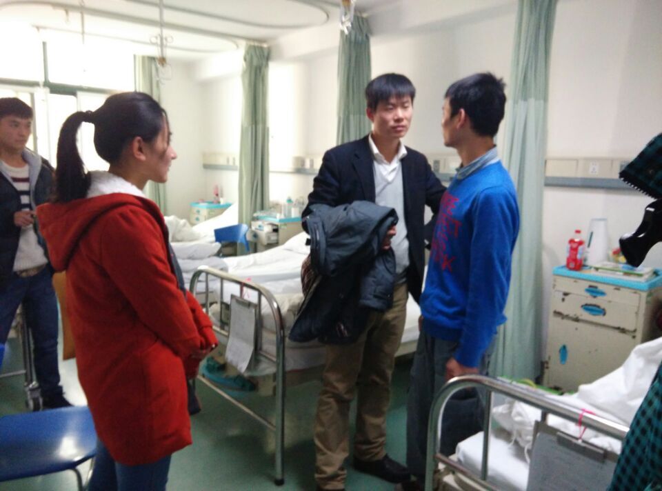 王刚同学是14级药学班的员工,因病在30日接受检查并办理了住院手续。当听到其住院的消息时,药学班班委自发要求前去看望,并组织班里的同学用折纸鹤的形式写下对王刚同学的真切祝福。当班委将纸鹤送予王刚同学时,场面令人感动而温暖。同学们娟秀的笔迹深深的镌刻在了王刚同学的心里。之后,许书记送上了公司党委对王刚同学的深切慰问,并详细询问了王刚同学的病情,嘱咐他不要有心理压力,勇敢面对,祝愿他能够早日康复,重返校园。与此同时,段瑾老师也提醒他在生活中的相关注意事项,稳定情绪,尽早出院。浓浓的师生情谊让王刚同学感动不已。