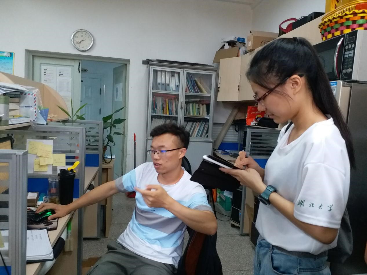 图为实践队员就实验室垃圾分类处理问题进行采访 石蕾 摄