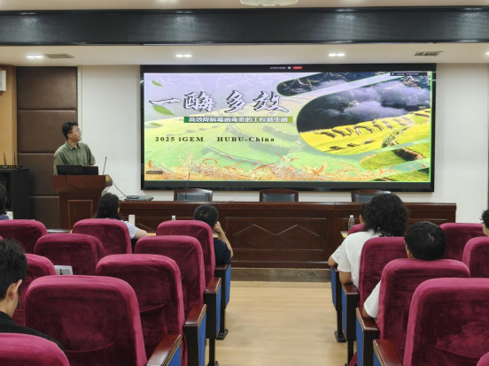 (通讯:徐明学 摄影:李炎)6月21日上午,公司在二楼学术报告厅举办2025年iGEM团队进展汇报会,深圳职业技术大学食品药品公司杨剑教授、深圳老员工命与海洋科学公司实验中心陈伟钊主任线上参与指导,公司副经理杨之帆、张海谋教授、团队指导老师以及HUBU-China、 HUBU-WuHan全体成员参加会议。
