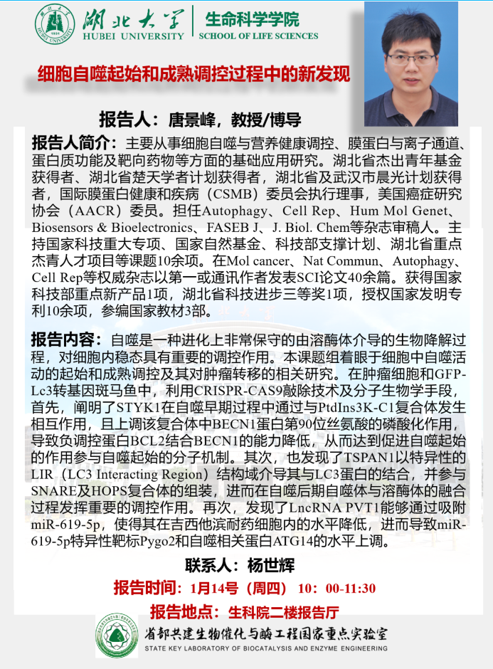 学术报告:细胞自噬起始和成熟调控过程中的新发现