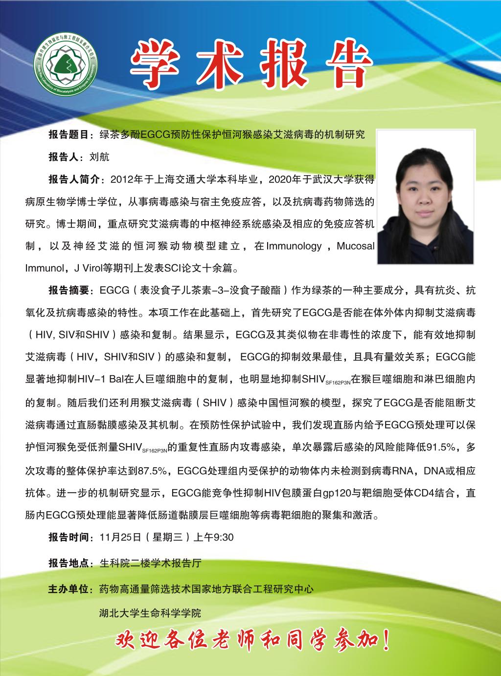 学术报告:绿茶多酚EGCG预防性保护恒河猴感染艾滋病毒的机制研究