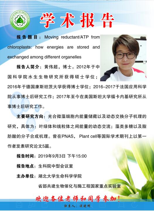 学术报告:Moving reductant/ATP from chloroplasts:how energies are stored and exchanged among different organelles