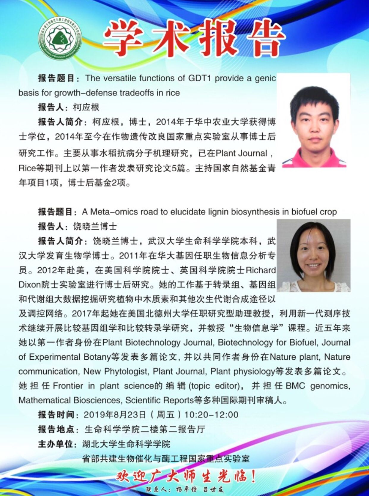 学术报告:The versatile functions of GDT1 provide a genic basis for growth-defense tradeoffs in rice