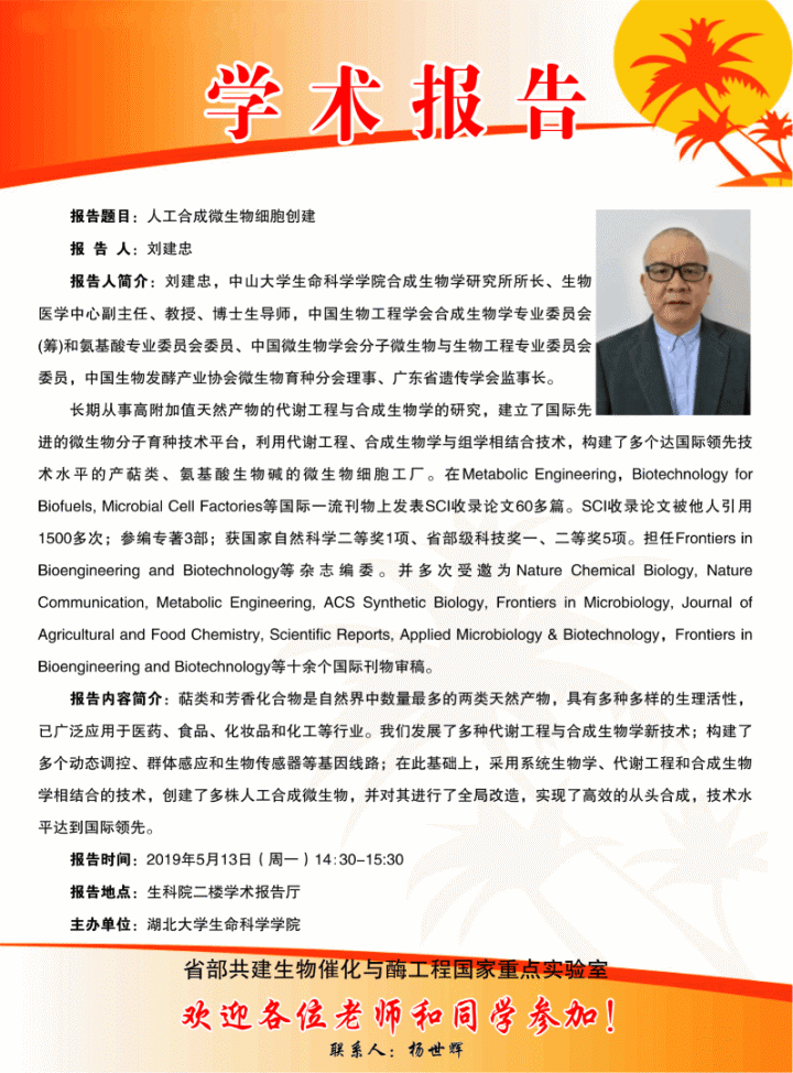 上一条:学术报告:Functional genomics :application in cancer therapy and mechanism in histone deposition 下一条:学术报告:Functions of ectosome release in flagellar membrance remodeling and cell-cell communication