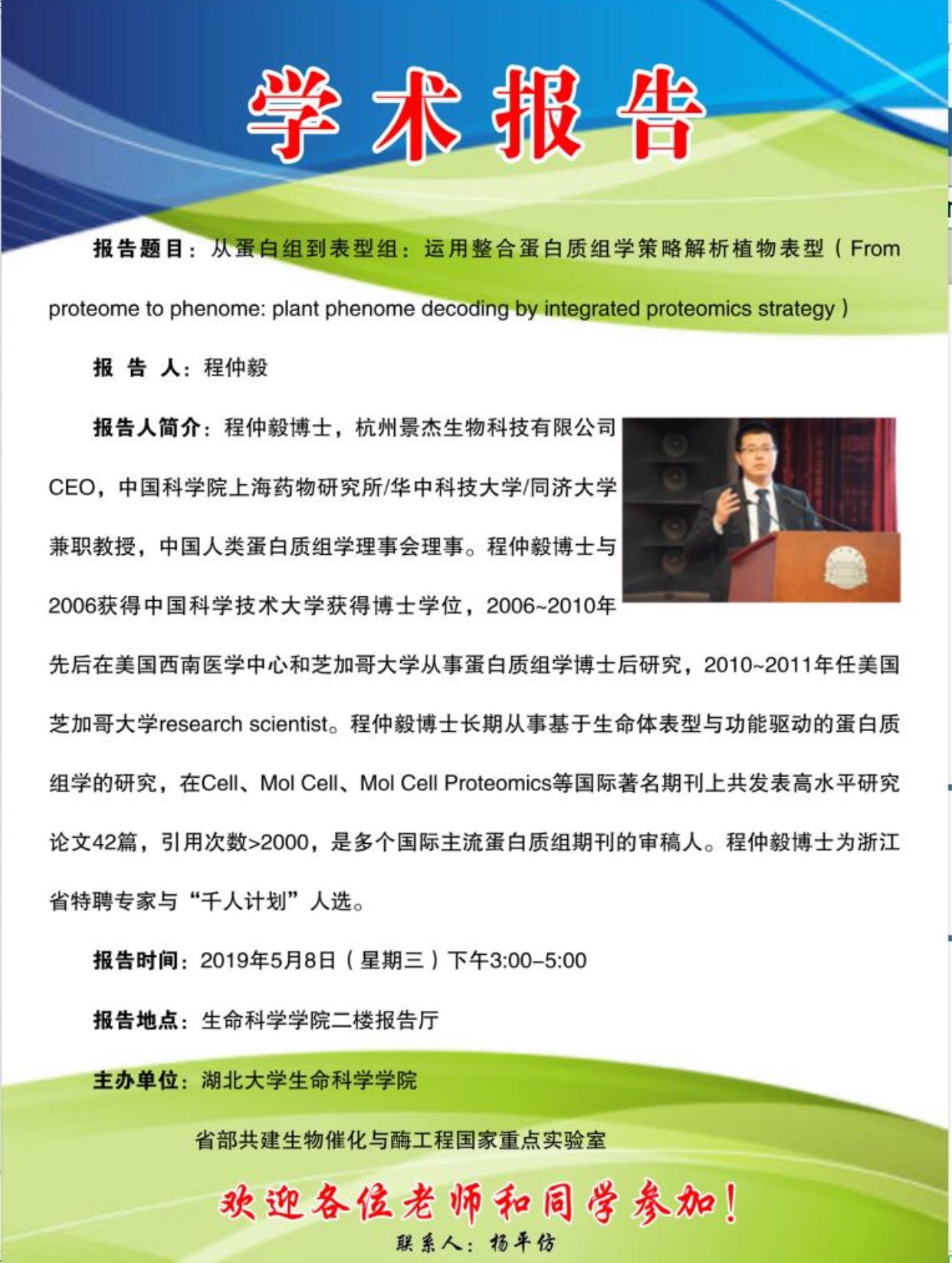 学术报告:从蛋白组到表型组:运用整合蛋白质组学策略解析植物表型(From proteome to phenome: plant phenome decoding by integrated proteomics strategy)