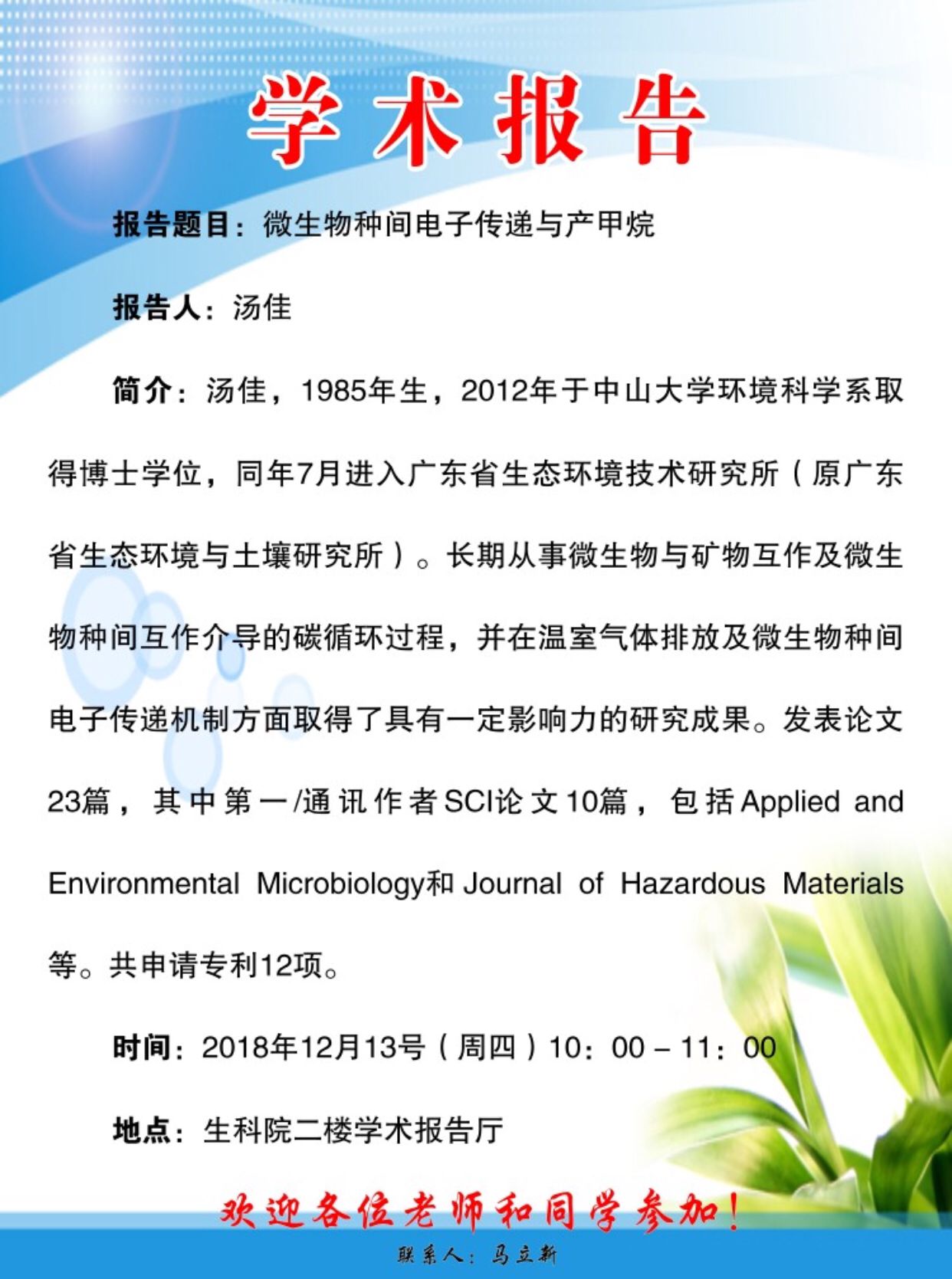 学术报告:微生物中间电子传递与产甲烷