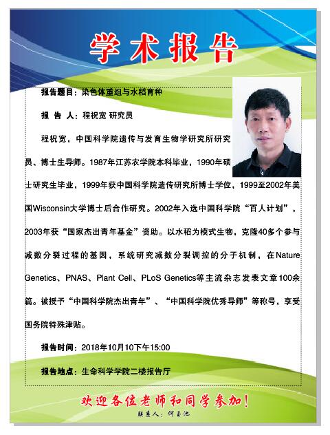 学术报告:染色体重组与水稻育种
