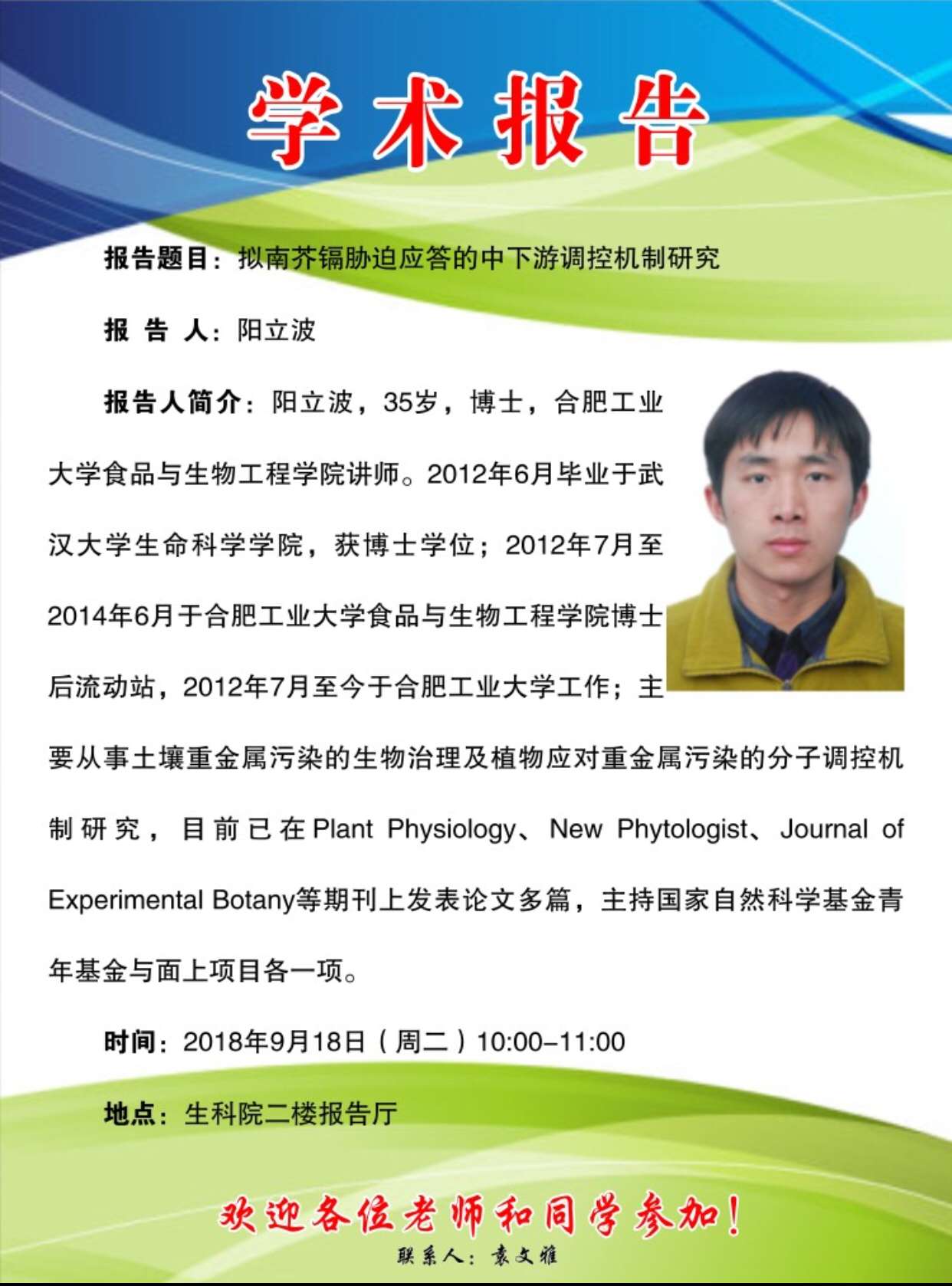 学术报告:拟南芥镉胁迫应答的中下游调控机制研究