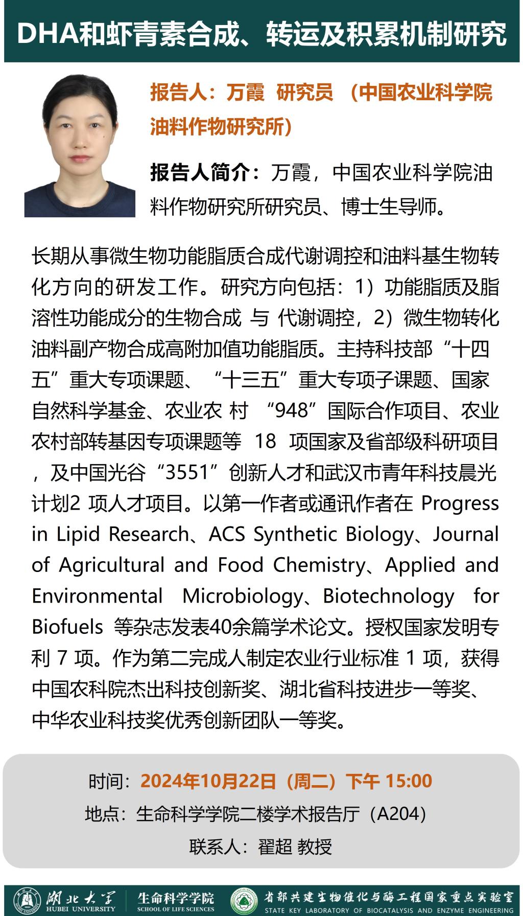 学术报告:DHA和虾青素合成、转运及积累机制研究