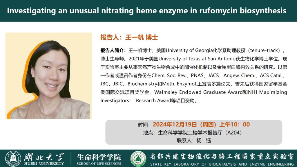 学术报告:Investigating an unusual nitrating heme enzyme in rufomycin biosynthesis