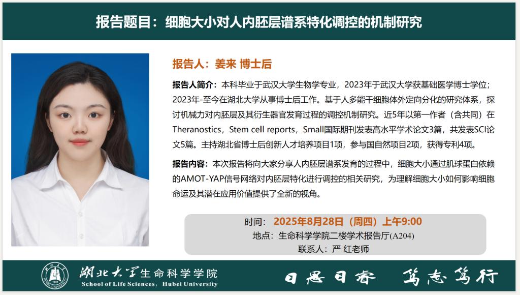 学术报告:细胞大小对人内胚层谱系特化调控的机制研究