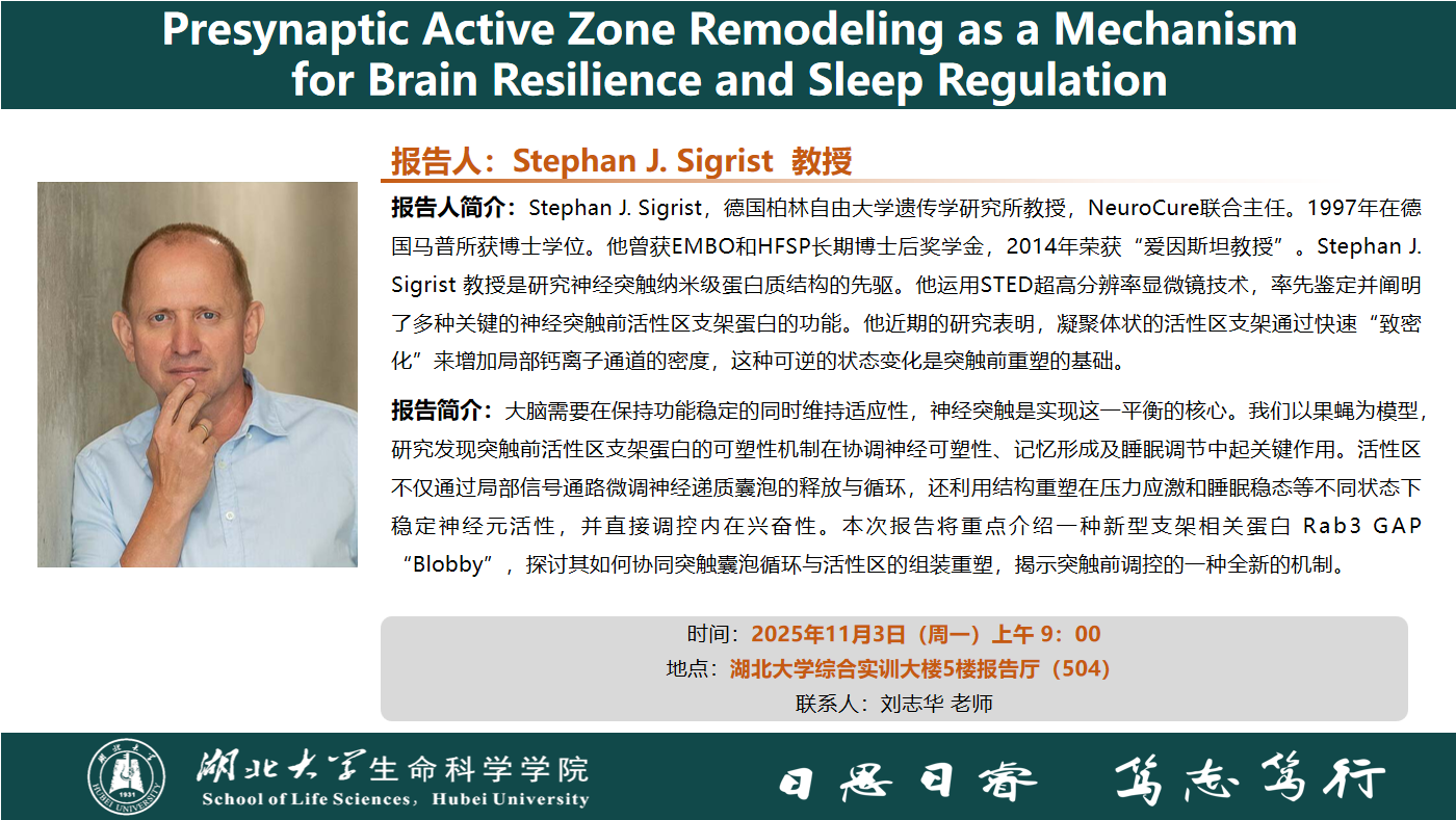 学术报告:Presynaptic Active Zone Remodeling as a Mechanism