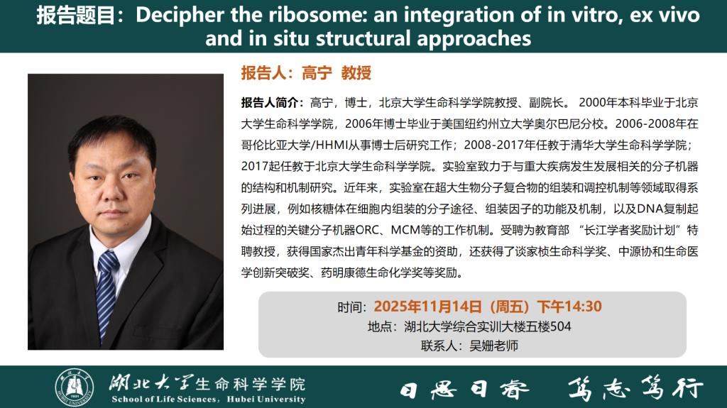 学术报告:Decipher the ribosome: an integration of in vitro, ex vivo and in situ structural approaches