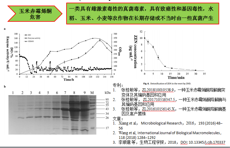 9. 张桂敏,王辉,蒋思婧,王美星,马延和. 玉米赤霉烯酮降解酶在水解玉米赤霉烯酮及其衍生物中的应用,201910938276.7。