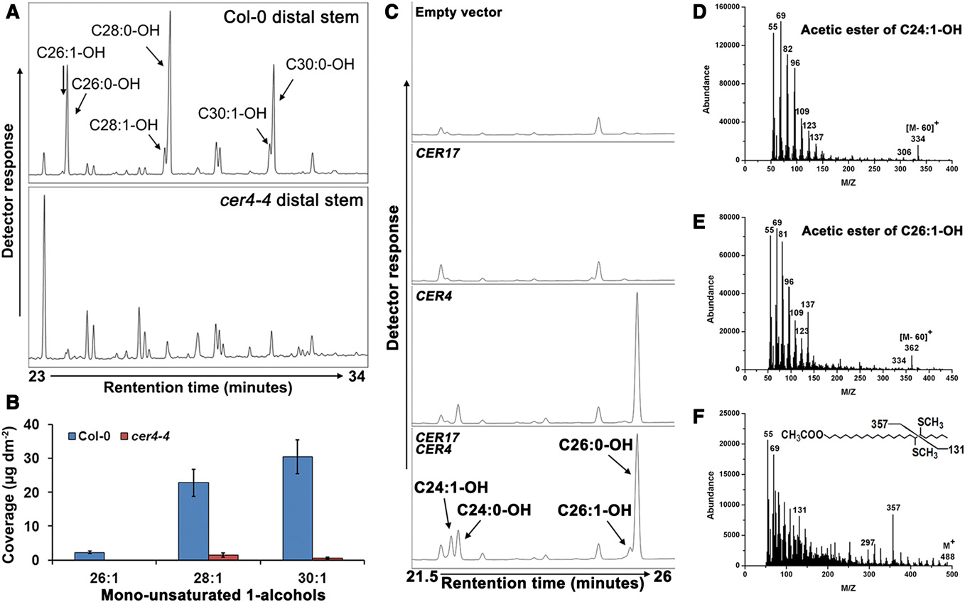 (1)首次从拟南芥花序茎的表皮蜡质组分中分离鉴定了一类新成分---超长链单不饱和脂肪醇,并明确该成分的生物合成途径(Plant physiology, (2017) 173: 1109–1124)。