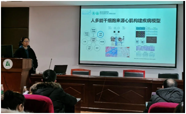 张冬卉教授(公司教工第二支部书记暨副经理)做了开场精彩报告,介绍了其课题组开展的人多能干细胞的心脏谱系分化与心脏疾病模型的构建工作。李爱涛教授(国重实验室副主任)分享了其团队在细胞色素P450酶的分子改造与催化应用方面、最近的突破性成果。药学科研团队成员(公司教工第二支部党员暨国地联中心教师代表)彭志红老师和胡琳珍副教授也就课题组研究的药物化学及天然药物化学方向最新的工作进展进行了汇报。此外,来自三个团队方向优秀的博士生代表与硕士生代表李俐(公司实验中心教师)、杨鹏程、张小栋、王斐、胡萍和阳航分别进行了课题研究工作的汇报。