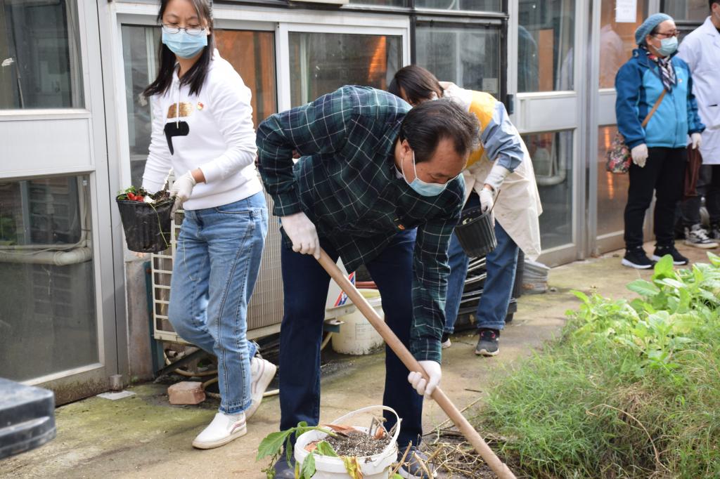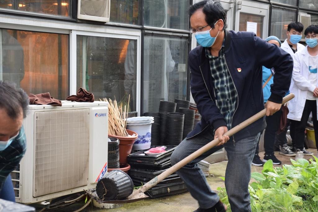 讲话结束后,全体教工党员领取工具,带上手套、拿起铁锹、携带抹布、提起水桶、撸起袖子,干的热火朝天,对公司大楼内走廊的仪器设备进行自检、整理、清扫、清洁,对温室内、温室周边环境进行清洁、清扫、整理、美化。在劳动中出力出汗,在劳动中发光发热。