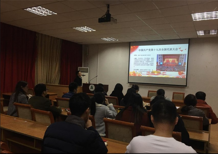 学习内容主要围绕十九大作出了的重大政治判断、重大理论概括、重大实践总结和重大战略部署等四个方面展开,对党所处的新的历史方位、我国社会主要矛盾的新变化、习近平新时代中国特色社会主义思想进行了学习,并剖析了十九大确立的新目标、新方略和新举措。支部书记丁威也特别为大家解读十九大报告中有关教育特别是高等教育相关的内容,习近平总书记在“过去五年的工作和历史变革”中,指出“教育事业全面发展,中西部和农村教育明显加强”;在“贯彻发展新理念,建设现代化经济体系”中,指出“加快建设创新型国家”,创新型国家建设离不开科技创新,离不开高等院校的参与;在“提高保障和改善民生水平,加强和创新社会治理”中,指出“优先发展教育事业。加快一流大学和一流团队建设”,实现高等教育内涵式发展与大家息息相关。同时活动也号召大家,不忘初心,牢记使命,在实践中加强党性修养,争做时代先锋。