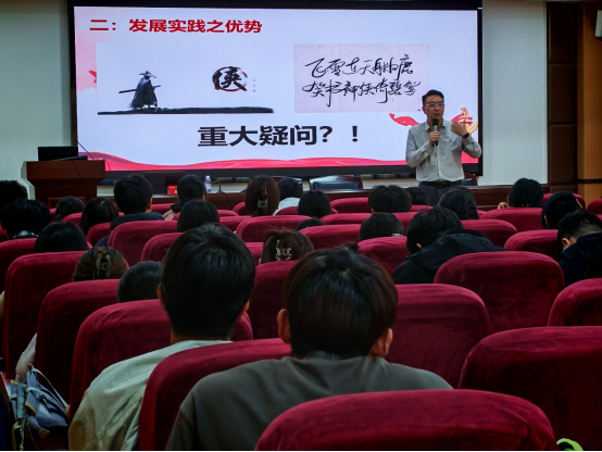 开班仪式结束后,团校首场专题课程接续进行,马克思主义公司教师王昊受邀作《比较视野:深刻把握中国特色社会主义制度的优越性——从“西方之乱”与“中国之治”的多维比较谈起》主题报告。王昊老师通过详实的数据、鲜活的案例和深入浅出的理性思辨,引导学员们深刻领悟“中国之治”的制度密码与独特优势。整场报告内容详实、逻辑清晰,学员们认真聆听、受益匪浅。