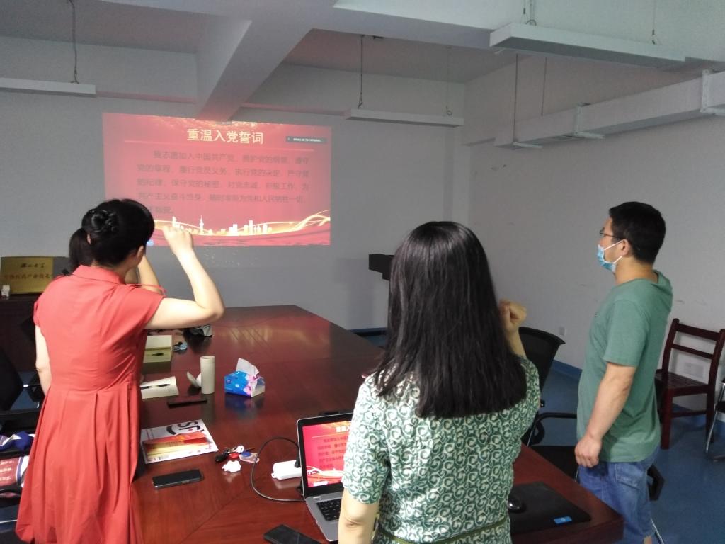 学习开始,支部全体党员重温入党誓词,对着党旗再次郑重宣誓,做到不忘初心、牢记使命。然后由孙丽娟老师主讲,带领支部党员学习百年党史,传承伟大建党精神