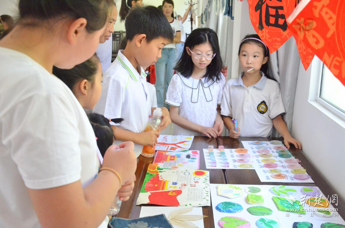 表演结束后,家长们来到作品展处观看孩子们课上的学习成果。
