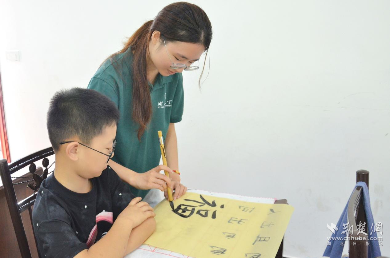 图为书法课堂作品展(“润雨生花”支教团供图)