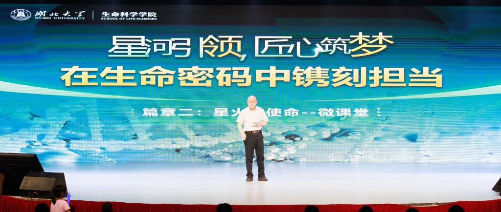 黄震教授在《星河为引,匠心筑梦》微课堂中分享了自己的硒核酸研究之路,并勉励生科学子:“当你们在电镜中观测到硒原子在DNA链上闪耀的微光时,也当让这份探索真理的赤子之心,照亮中华民族伟大复兴的璀璨征途。”